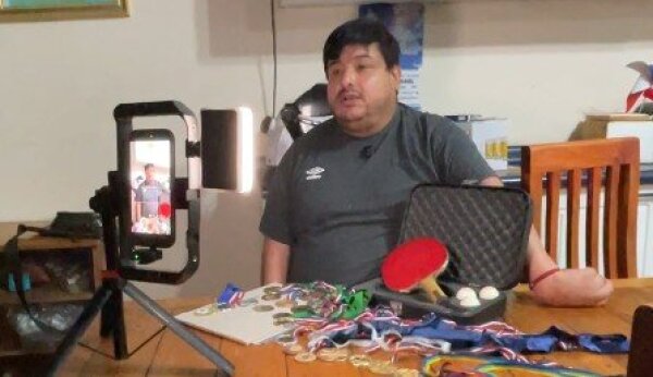 Su relato parte desde los logros. Habla sin rodeos: cuenta que fue cuatro veces campeón nacional, campeón panamericano, que fue homenajeado en La Moneda y en el Estadio Nacional, y que actualmente trabaja como profesor de tenis de mesa en un colegio, donde —según su testimonio— han conseguido medallas que antes no se lograban.